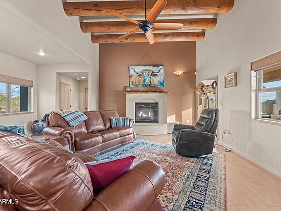 Horse property. This stunning Santa Fe home truly has it all!!! Southwestern elegance from every corner!! Vaulted ceilings, exposed round beams, custom woodwork throughout, gorgeous Beehive fireplace, impeccable outdoor landscaping, and entertainment space! The gourmet kitchen has been upgraded with modern appliances, custom cabinets, and timeless granite counter tops. Through out the living space there are custom touches including and electric fireplace, French doors, tons of light from the many windows and skylights, arched entry ways and custom built in cabinetry. Multiple living spaces offer comfort and storage, making entertaining a breeze. The guest bathroom was updated with exquisite tile throughout the shower. Outside the property has been fully fenced with beautiful entrance gate The horse facility has covered corrals and an arena! Home was freshly painted inside and out in 2024. Roof was replaced in 2024. Three car garage offers plenty of room for storage and vehicles. There is also a 50 amp RV hookup. With this all being on over 3 acres, it is the perfect horse enthusiast property!!