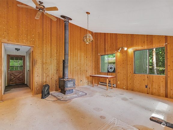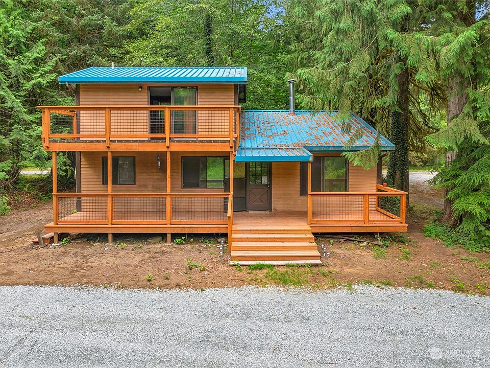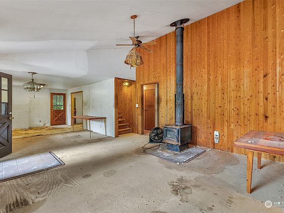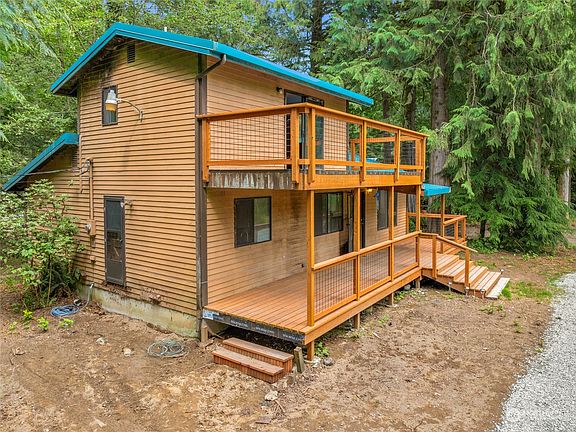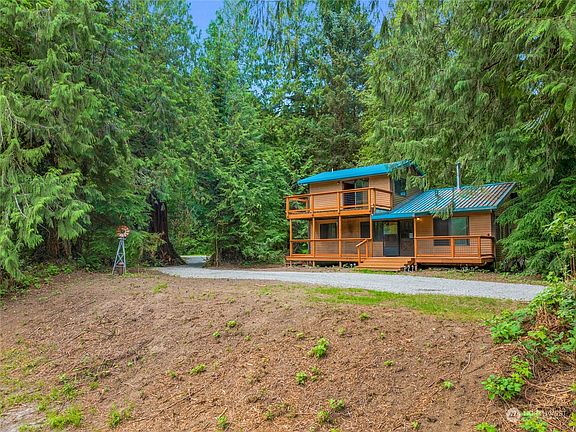 This rustic cabin is booming with potential. 3-bedroom, 1-bath home nestled on 5 parklike acres with 270 feet of pristine waterfront on the Stillaguamish River. Enjoy breathtaking views of Whitehorse Mountain from your private retreat. The property includes a 36x36 dream shop with an RV bay and loft storage, a small barn, and covered wood storage. The lush landscape is adorned with many fruit trees and tall evergreens, creating a truly private setting. Experience tranquility and nature's beauty right at your doorstep.