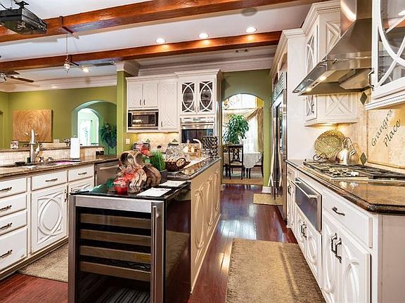 - Interior: Foyer - Entrance, Ceilings 9 Ft Plus, Double Vanity, Separate Shower, Whirlpool Bath, Bookcases, Tile Bath, Ceilings - Trey, Carpet, Handicap Access, Exposed Beams