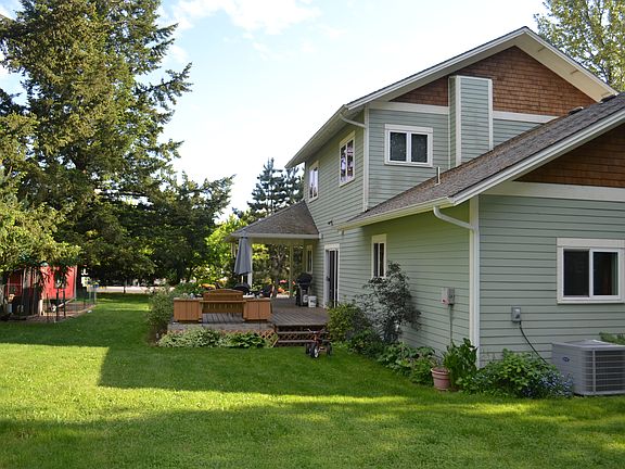 Beautiful, farmhouse-style home with wrap-around porch built in 2005 on 2 acres. Desirable NW Albany/Benton County location in beautiful rural residential/agricultural hill setting. Conveniently located less than 15 minutes to either Corvallis or Albany. 2,010 SF + attached garage. 3 bedrooms and bonus room (perfect for office/guestroom). Save money with well water, septic system, and newer heat pump with A/C. Solid hardwood floors downstairs and carpet upstairs. Custom natural-finish, solid wood trim throughout. Pantry. High 9 ft ceilings on both floors. In-ceiling speakers downstairs and on large deck. Chimney in place for wood stove. Walk-in closet already plumbed for optional master bathroom. Huge storage space in stick framed attics, one large enough to be a second bonus room. Fenced garden area, lots of fruit trees, berries, oak grove and other mature trees. Lots of room for a shop, chicken coop, etc. More info and photos: http://4093oakgrove.wix.com/houseforsale