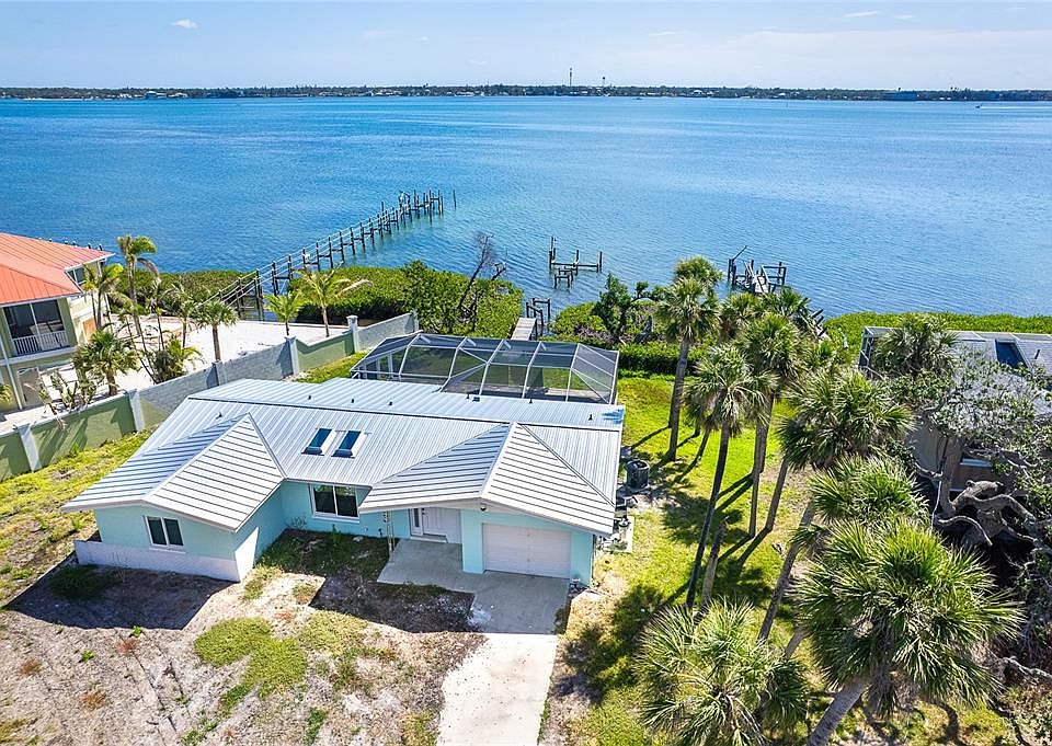MANASOTA KEY – BAYFRONT HOME WITH DOCK & DEEDED BEACH ACCESS This home sustained storm surge damage and is being sold as is. It is a fantastic opportunity to restore and personalize a rare waterfront property on Manasota Key. Welcome to Pelican Shores, where this charming 2-bedroom, 2-bath pool home with a 1.5-car garage sits on an impressive nearly one-third-acre lot and 71’ foot of water frontage—offering direct access to the Intracoastal Waterway, a private deeded dock, and community deeded beach access just steps across the street. Whether you're envisioning morning beach walks, launching a kayak, or boating directly from your backyard, this home delivers the ultimate Florida lifestyle. The spacious lanai and caged pool, added in 2020 with stylish brick pavers, is the perfect place to relax and entertain while taking in stunning sunrises over the Bay. In the evenings, cross the street and head for the beach for breathtaking Gulf sunsets. Although the home was affected by the recent storm, many key features remain intact—all windows are Hurricane Impact-rated and undamaged. The sliding glass doors in both the kitchen and living room are currently being replaced with new Hurricane Impact, already ordered for installation. The interior showcases cathedral ceilings, polished Terrazzo floors, and a spacious kitchen that flows into a large utility room for your washer and dryer, and a convenient full guest bath located off the laundry area and garage—designed for practical, everyday living. The formal living and dining rooms offer direct access to the lanai through the soon-to-be-installed sliding glass doors, and both bedrooms are generously sized, providing plenty of comfort and space. This is a rare chance to own on the Intracoastal Waterway in a location just moments from local restaurants, entertainment, and all that Manasota Key has to offer. Don’t miss this opportunity, call today to schedule your private showing.