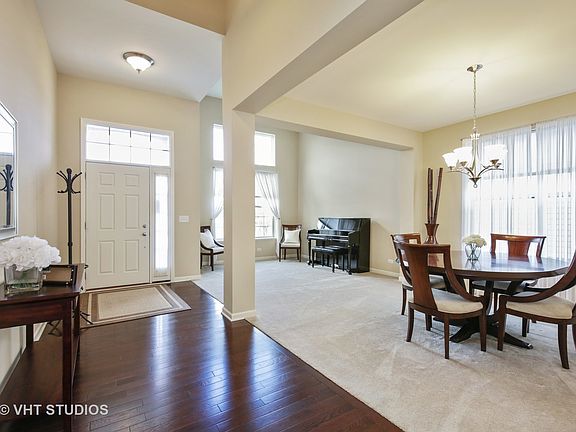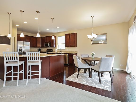 This move-in ready home with added upgrades and Burlington School District #301 is a must see. Beautiful entry greets you with hardwood floors, and open floor plan. The formal living and dining rooms lead to the kitchen which opens to the family room. The kitchen has Java Glazed Cabinets and center island as well as eating bar area for stools, and eat in table area that looks out to the deck which walks down to the patio and backyard. 1st floor den or 5th bedroom and 1st floor laundry! Master bedroom suite has 2 walk in closets and luxury master bathroom. Ceramic tile in master and hall bathroom, and hardwood flooring in 1st floor powder room. English look-out basement lets in plenty of natural light and gives you the feel of an extra floor of living space. 3 car garage and neutral decor complete the home. Great neighborhood with park.