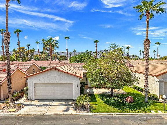 Welcome to this beautifully updated 2-bedroom, 2-bathroom home located in the highly sought-after Golden Sun Estates of Palm Desert. This property boasts new custom paint throughout, brand-new Milgard windows, and custom window shades, providing both style and energy efficiency. The home features a state-of-the-art custom shower system with a lifetime warranty in both bathrooms, along with brand-new plumbing. You'll enjoy the comfort of a new HVAC system, and both bedrooms feature plush, brand-new carpeting. The attached 2-car garage comes with custom storage solutions, adding to the home's convenience. Situated on a premier lot, this home offers breathtaking front and rear yard views, perfect for relaxing or entertaining. Golden Sun Estates offers low HOA dues and fantastic community amenities, including two pools (one of which is steps away from this home), a clubhouse, BBQ areas, tennis and pickleball courts, a billiard room, and private gated access. Appliances are included, making this move-in ready home an exceptional opportunity in a prime location! Furnishings available.
