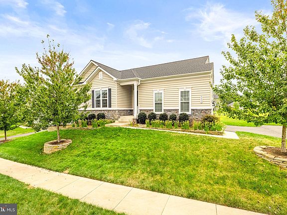 Open house cancelled. Property shall be conveyed by Special Warranty Deed. Hilltop living in sought-after Aldie Estates! This meticulously maintained modern ranch features an open floor plan with 10’ ceilings, beautiful floors, and abundant natural light. The gourmet kitchen boasts stainless steel appliances, granite countertops, a walk-in pantry, and a 12’ island with pendant lighting, opening to the great room with high ceilings and a gas fireplace. The primary suite with full bath and walk-in closet. Two additional bedrooms, full bath, and a den complete the main level. Walkout basement with windows ready for your finishing touch.