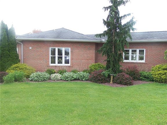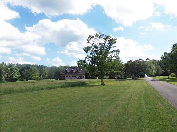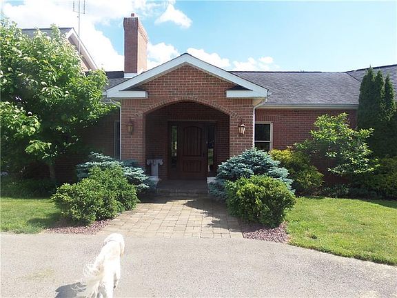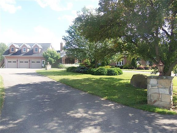 One of a kind! Welcome to this stunning, private, vacation-like home! Enjoy the meticulously maintained outdoor spaces overlooking a big beautiful stocked pond with exotic Amur fish for cleaning. The pond water is so clear; it is such a serene landscape! There is an abundance of deer and other wildlife that visit the property. The views are amazing! Get ready for summer fun, there is an in-ground pool with a newer automatic cover. The interior offers a great open concept. The Chef's kitchen features high-end appliances, cherry cabinets, a large island, a wet bar with a wine cooler- all areas offer granite countertops, except the half bath by the laundry room. The dining room off of the kitchen features a striking vaulted beamed ceiling, access to the pond and the pool, and is currently used as a game room. Entertain in the living room with a beautiful stone fireplace highlighted by wood beamed cathedral ceilings and radiant heated floors. The first-floor master is bright and spacious, has double closets, and a private bathroom with a soaking tub, a separate shower, and double sinks. The bedroom on the upper level has a private deck and could also be a master suite. This property includes a steel beam framed building over 15,000 square feet, with 12-inch-thick concrete floors with an additional small horse barn attached on 12.5 acres in charming New Wilmington, PA.