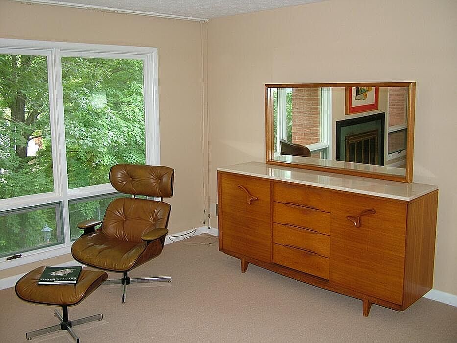 GREAT HOME. GREAT LOCATION. Extremely roomy home (2500 total sq ft approx; 1846 up 664 down with full walkout), with courtyard in back leading to second stone sitting area overlooking creek in desirable neighborhood. Large window wall with center fireplace in living room overlooking treetops and back yard. Downstairs fireplace with window wall. Move in condition! Average utilities $142 per month! NOTE: showing available after 4/17 and leasing shortly thereafter. Updated contemporary ranch with open floor plan Open . . . airy . . . contemporary . . chic . . . abundant storage . . . light . . . 3 ? 4 bedroom 2.5 baths Perfect for Heywood Wakefield, Eames, Nelson, Mid Century Modern, Danish Modern, Panton, Frankl, Platner, Zeizel, Noguchi, Platner, 50's, Knoll, etc. HUGE ROOMS 24? by 15? living room with twin 6? windows flanking fireplace with gas logs 21? by 12? large eat in kitchen 28? by 15? family room with twin 6? windows flanking 2nd fireplace with gas logs 21? by 12? large master bedroom with private full bath Two (2) other bedrooms with built-in shelves and desks Slate foyer Large finished bonus room for office, etc in basement Large unfinished storage room in basement and 2 car garage Note: Home available for showing after April 17th and leasing after 4/22