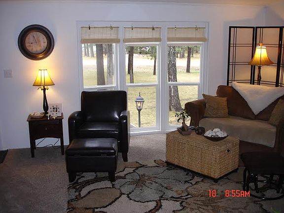 Located in country setting park. Recently had a caring makeover. New stainless steel appliances. Upgraded cabinets, hardware, light fixtures, molding and paint. New flooring in kitchen and carpet. Kitchen spacious with lots and lots of cabinets. Large fenced in back yard (for dog lovers) with shed. Three level deck, partially covered. Roomy living room with bay window. Kitchen has attached laundry room (washer and dryer incl.) and computer desk area with window looking into back yard. Beautifully maintained park. Owner very prompt at repairing any issues. Lot rent only $255.00 a month with water, sewer, and garbage incl. Majority of residents are retired and love it here. School is nearby with busses stopping at park. Post office and health clinic just one mile away. In the country yet close to town. Lots of lakes for fishing. Dogs are very welcome.