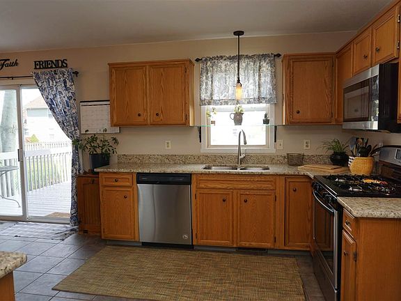 This home offers 3 bedrooms, 1.5 baths, 2 car attached garage. Many updates include kitchen granite, new stainless appliances, lots of cabinets including built-in desk. All appliances stay including washer/dryer. Finished lower level rec room and office (or craft room). New roof. Fenced yard with deck and patio. Large storage shed. Easy access to interstate for commuters. Quick possession. Home warranty available.
