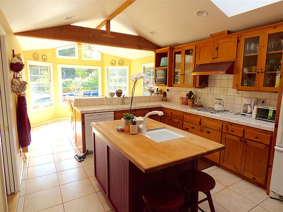 One of a kind charming, custom, single story home in "Olde" Carlsbad with/ awesome yard. Wonderful OCEAN & stunning Sunset VIEWS from the front and a parklike setting in the back with beautiful lagoon- like pool and spa. Privately situated on a .46 ac lot with gentle ocean breezes. Wood beamed vaulted ceilings, skylights, hardwood floors, French doors & 2 fire places. Spacious, sunny kitchen with center island, allowing for work space & second sink. Air conditioning & low maintenance yard. See supplement.