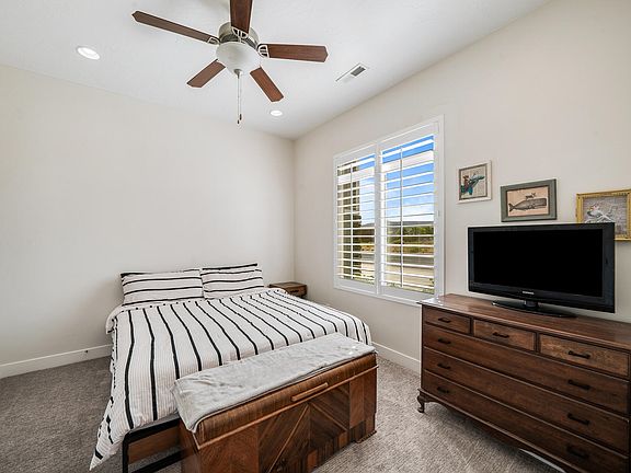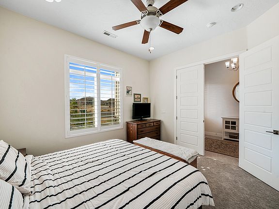 In the heart of Dixie Springs, this home offers the perfect blend of tranquility and convenience. You'll be just moments away from all the exciting activities and amenities that Sand Hollow has to offer, including water sports, championship golf, sxs riding, and exploring of the stunning scenery. This type of access plus the open and upgraded floor plan in this 5-bed, 3-bath home make it the ideal haven for families and outdoor enthusiasts alike. Boasting, granite counter tops, stainless appliances, upgraded shutters, therapeutic hot tub, fire pit, and an in ground trampoline this is the one for you. SAVE 100's of thousands of dollars in interest, mortgage insurance, and cost, this loan is assumable at a VERY LOW RATE!!. Motivated Seller. Information deemed reliable, however buyer to verify all information including utilities, rental restrictions, and HOA information if applicable. The listing Broker's offer of compensation is made only to participants of the MLS where the listing is file