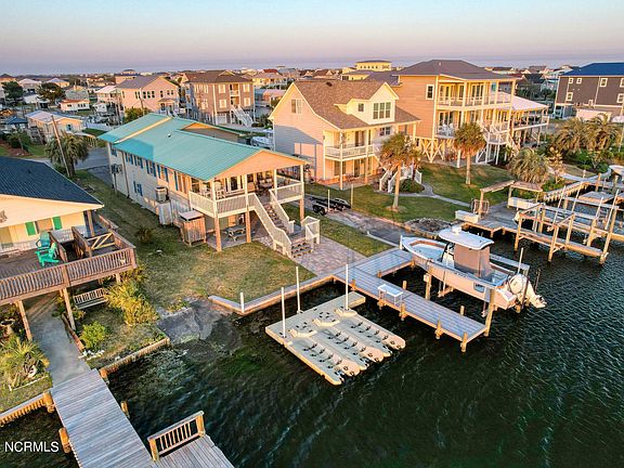 Escape the ordinary and immerse yourself in extraordinary coastal living on your very own piece of paradise along the Intracoastal Waterway. This Topsail Island home, nestled in the heart of Surf City, offers a sanctuary of serenity with awe-inspiring unobstructed panoramic views that effortlessly captivate the mind and soul. This island home boasts 3 bedrooms, 3 baths, and an additional room perfect for an office or second sitting area. The open floor plan welcomes you with warmth showcasing recent upgrades including a sleek metal roof, quartz countertops, and premium LVP flooring. Step outside to your private oasis where the magic truly unfolds. A newly upgraded dock awaits, complete with hog slat deck panels, a state-of-the-art 10K lbs. boat lift and motors, ensuring seamless access to endless water adventures. Whether it's leisurely boating excursions, thrilling fishing escapades, or simply soaking in the coastal breeze, this home offers a gateway to unparalleled enjoyment. Host unforgettable gatherings with friends and family, savoring cookouts against the backdrop of shimmering waters and BREATHTAKING sunsets. Offered with partial furnishings, this exquisite retreat is ready to welcome you into a lifestyle of coastal bliss. Don't miss the chance to make this slice of paradise your own.