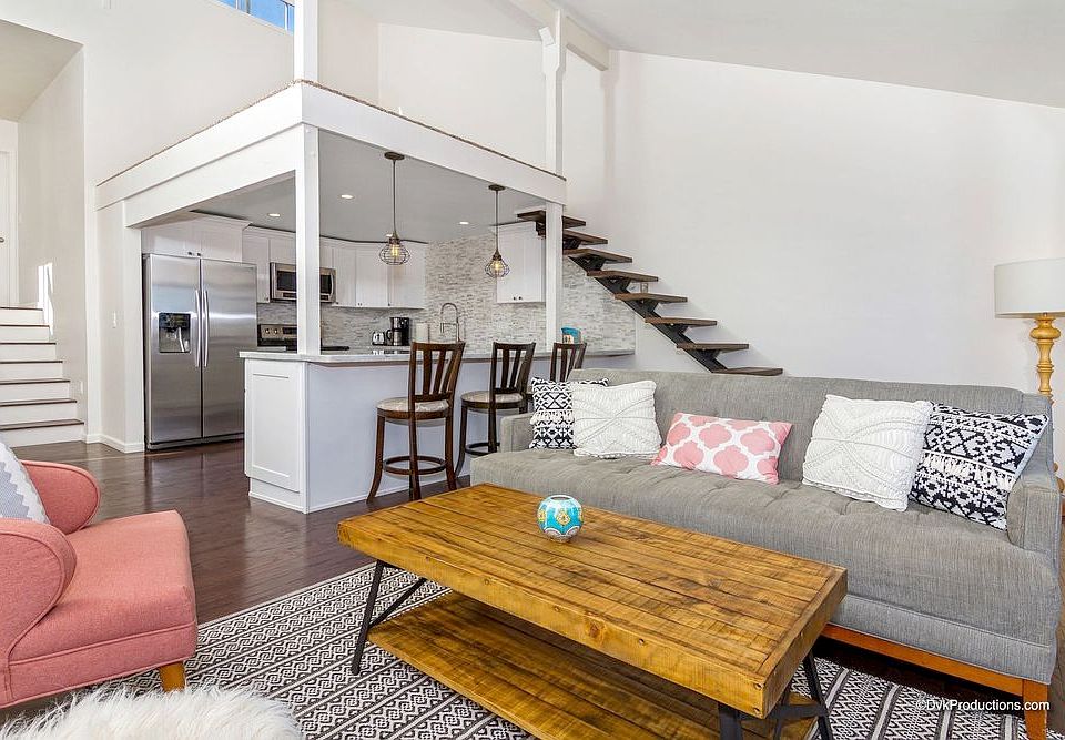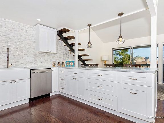 Seller will entertain offers between $495,900 - $548,900. Stunning remodel with custom, rustic & modern finishes and just blocks from the beach! New dual pane UVA/UVB windows throughout and two 8’ sliders recently installed (*not photographed).  Spacious 3 bedrooms + bonus loft (*custom railing around loft to be installed). Light, bright & open with ocean breezes.  New paint throughout, as well as canned & pendant lighting. Balcony off master bedroom with lagoon views! Beautiful hardwood floors. Gorgeous kitchen includes a charming farmhouse sink, white shaker cabinets, marble counters with breakfast bar, stone & marble back splash and high-end Samsung SS appliances. Master Bath features a custom barn door, dual vanity w/ marble counters, custom tile shower,  walk-in closet with built-ins. Updated full guest bathroom on first level near two bedrooms.  New cottage style doors and mirrored closets. Beach style living, quick easy walk to lagoon and beach. Zoned for top rated Carlsbad schools. Features one garage space and one assigned parking space. End unit, only two shared walls: one unit below and one to left!