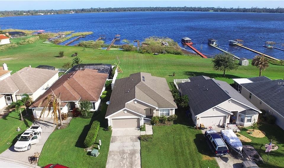 Great chain of lakes homes located on Lake Rochelle. This split floorplan 4 bedroom, 2 bathroom home had vaulted ceilings and an open floor plan with amazing views out over the water from the Master bedroom, living room, kitchen and spare bedroom. You can enjoy the FL lifestyle in your very large, under roof screened in back porch or take the family out in your boat that's moored up to your private dock. Do not miss out on this opportunity to own a lakefront home for this low price!!
