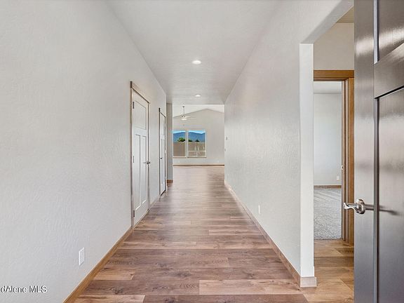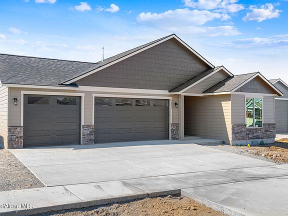 Come and take a look at one of Post Falls newest subdivisions. This spacious 3 bedroom 2 bath rancher offer so many great features! Wide entry hallway with ample amount light coming in from the windows to the west into the dinning and living area. Minimal steps into this home that features an open kitchen with Huntwood cabinets and granite counters that looks out over the living space into the back yard. Tasteful flooring throughout with carpet in the bedrooms, laminate or LVP in the main areas and LVP or Tile in the bathroom areas. Stay warm during the winter with this beautiful gas fire place wrapped in rock with mantel. This spacious yard will have sprinklers in front and back as well as landscaping. This home is move in ready!