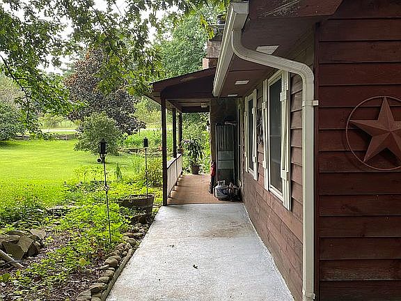 Garage has been converted to a den with stamped concrete flooring. A wood stove added!