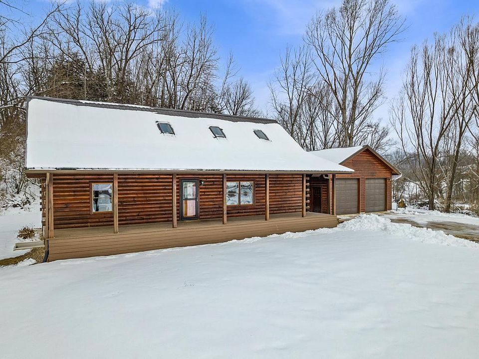 This 4 bed, 3 bath, 3,400 sqft home sits on 30 acres. Property features a heated pole shed with a loft, hot tub, and a full bar with a kitchen! There is an abundance of wildlife brought in by the oversized pond and spring-fed creek. This property has not been deer hunted in over 26 years! Interior features include a two story lofted living room, full baths on all levels, a lofted master bedroom with an en suite bathroom, and a walk-in closet off the loft. Not pictured, is a 10x10 hidden safe off the oversized second living room with in floor heat. The bones of this home are pristine with new heating, air conditioning, water heater, water softener, and a rust filter installed new in 2021. Metal roof was replaced on the home 7 years ago. Schedule your showing today!