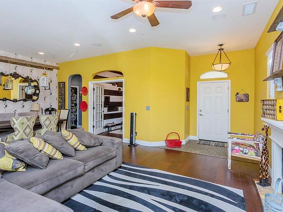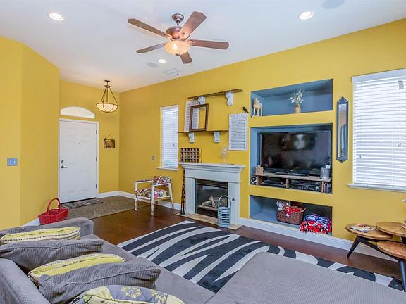 Super cute home in a gated community. Living area is open, with fun, bright colors, and a great floor plan. Kitchen has a large center island, that could be used as a dining table as well. Master has a large closet, and a large bathroom with a spa tub. Beautiful wood laminate flooring throughout. Back yard has a small concrete patio, and synthetic lawn. Third bedroom does not have a closet, ladder hanging over the dining room table will not stay.
