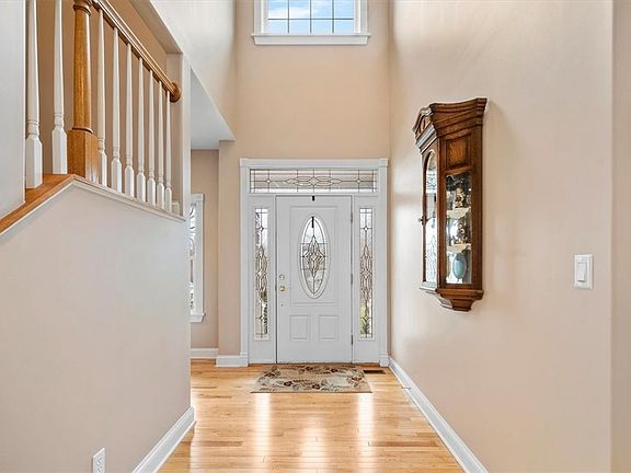 Masterfully built custom home in the highly desirable Fairwinds Plan on a remarkable private lot. With an abundance of living space enjoy this 5 BR 4.5 bath home with many fabulous features. The main floor open concept is an entertainers dream. The large kitchen flows beautifully into the bar area and 2 story family room w/floor to ceiling brick fireplace. Walk out from kitchen to trex deck. Dining Rm has butler pantry w/ granite & cabinetry. Mud room w/nook desk area. Work from home in the bright and cheerful private den. The upper level primary suite impresses w/vaulted ceiling and a private oasis ensuite. All BR's are spacious w/great closet space. The LL continues the entertaining space with a wet bar & wine chamber. Cozy up by the heat of the pellet stove. Add'l 5th BR and full bath. Walk out to patio and firepit, Large private backyard backs up to woods.