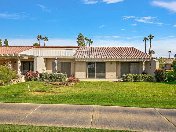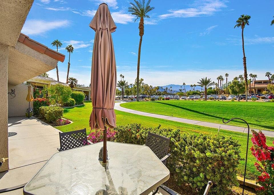 Palm Desert Resort CC- Price reduced! Here is bargain! make an offer! You will love this pristine light and bright 2 bedrooms, 2 baths, 2 car garage 1177 sq ft unit in prime location near the clubhouse with beautiful views. The unit features 3 patios for panoramic views and plenty of space to entertain with very little chance of golf balls coming near the patios. The open and spacious condo features high ceilings in living room and bedrooms with a great separation of bedrooms for privacy. The AC/Heating unit is almost new. The kitchen is perfect for cooking delicious meals while you enjoy the gorgeous golf course and mountain views. You will love being across from the clubhouse with restaurant and bar, activities, entertainment, fitness, pickleball, tennis, and more. There are community pools through the development. The HOA dues of $756 per month include manned front gate, internet and cable, landscaping, paint, roof, and all clubhouse amenities except golf. (Golf is an annual membership or pay as you play.) Palm Desert Resort CC is a great place to live year-round or seasonal too. It is beautiful and quiet and convenient to shopping, medical, airport, I-10, and restaurants. Home can be sold furnished, partially furnished, or unfurnished.