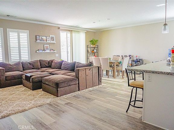 Welcome to this beautifully upgraded home in the desirable community of Alberhill Ranch! This single-story home boasts tall ceilings and a spacious layout. As you enter, you'll notice the elegant crown molding in the entryway and family room, adding a touch of sophistication. The interior features vinyl plank flooring throughout, making maintenance a breeze. The kitchen is a chef's dream, with granite countertops and an island countertop for ample workspace. The laundry room has been upgraded with additional cabinets for added convenience. Step outside to the backyard oasis, complete with a covered patio featuring two fans and lighting, perfect for entertaining or relaxing outdoors. The backyard also features concrete hardscape and retaining walls, adding to the charm and functionality of the space. Other notable upgrades include solar, shutters throughout the house which also help maintain energy efficiency, water softener, tankless water heater, and an alarm system for added security. This home is not just a house; it's a lifestyle. The Alberhill Ranch Community offers a plethora of amenities, including a pool, splash pad, playground, soccer fields, basketball courts, barbeques, picnic tables, and a clubhouse for events. Additionally, the brand new Alberhill Elementary School is located within the community, offering a state-of-the-art facility with technology, STEAM programs, and site-based childcare for families needing this service before and after school. Enjoy the convenience of nearby shopping at the Lake Elsinore Outlets, as well as easy access to freeways for commuting. This area is also known for its top-rated schools, making it an ideal location for families. Don't miss out on this opportunity to own a home that has been lovingly maintained by the original owner, who purchased it directly from the builder. The builder warranty is still in effect for a few more years, providing peace of mind for the new owner. Schedule your showing today because this house will not last!
