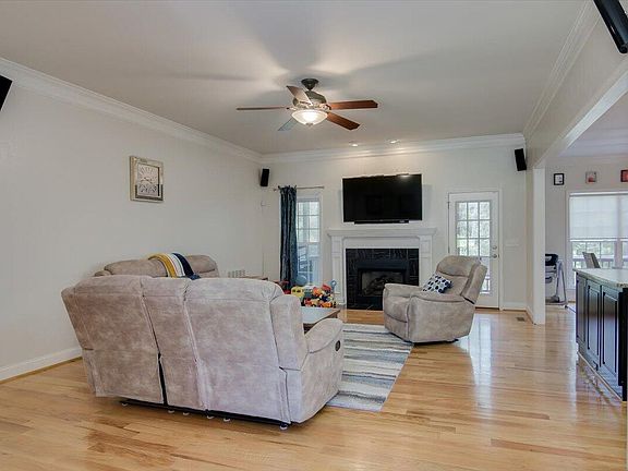 This 4 bedroom, 2 bath home with many upgrades! Flagstone floored rocking chair front porch, stacked stone columns is the perfect place to kick back and relax. The home backs up to green space where it has a screened in porch AND an uncovered deck. This open floor plan features hardwood floors, upgraded crown molding and plantation shutters. The kitchen has been updated with plenty of cabinets, granite counter tops, stone back splash, built in microwave and updated light fixtures. The living room has a gas fireplace and access to the screened porch. The 4th bedroom is upstairs w/great attic storage and a separate split unit for climate control. 2 car garage with a sink! The home does also have a tank-less hot water heater.
