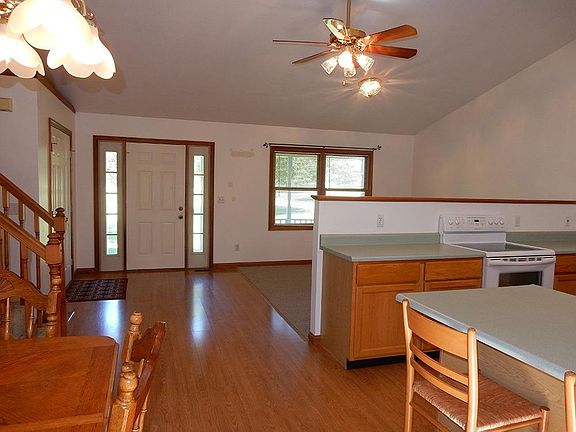 NEW ROOF! Awesome 4 bedroom, 2 bath Quad on 2.9+ acres! 2,368 square feet! Open floor plan! Vaulted main level with eat-in kitchen, dining room and formal living room. Huge master suite with adjoining full bath and 2 walk-in closets. Lower level family room w/gas fireplace & pellet stove. New carpet on 2nd level. Great location. Large level lot.