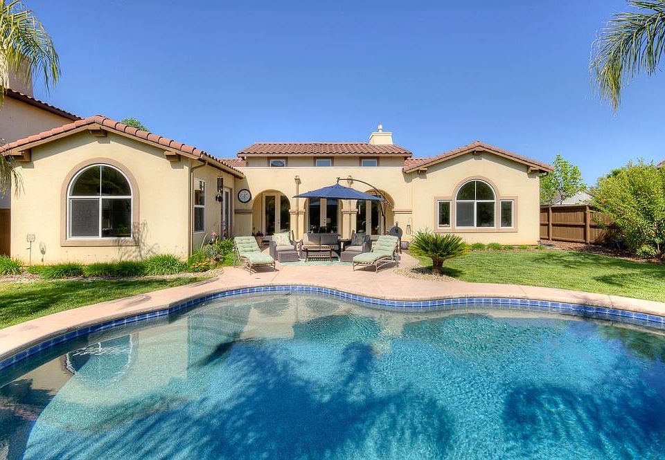 Welcome to your gorgeous new home and resort-style living in the prestigious lakeside gated community of Quail Lake in Clovis. This upgraded, grand single-story home could have up to 5 bedrooms & 2.5 baths in nearly 2700 sq ft w/3-car garage & sparkling pool on a private corner lot. This opulent home is located in one of the most exclusive areas, close to the lake, a preserve, & 2 miles of trails, surrounded by other fine homes. Walk in and say wow as you view the triple set of French doors opening onto the patio with upper windows flooding the home with light. The PebbleTec pool with sun shelf, waterfalls & palm trees will transport you to the islands. Extended patio and tons of grass in your private oasis with almost no other homes visible. Open floor plan boasts a huge chef's kitchen with tons of cabinets, granite, gas cooktop, island w/breakfast bar & butler's pantry. It all flows onto the study and formal dining rooms, which are great for entertaining or could be converted into bedrooms. Spacious primary retreat features big windows & spa-like bath w/glass shower, makeup desk, & oversized soaking tub for relaxing. Double walk-in closet completes the luxurious suite. Two more bedrooms down the hallway including full bath w/dual sinks & separate toilet/shower. Large laundry room with tons of storage. Quail Lake offers incredible amenities like boating/kayaking, fishing, Olympic-sized pool, clubhouse events & a highly-rated charter school. Schedule your appointment today!