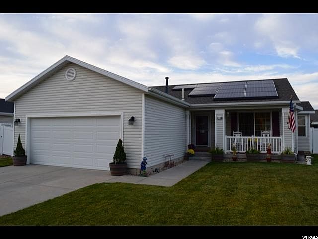 No showings until the Grand Open House this Saturday October 21st 11am-3pm! Then come and see this absolutely beautiful south facing one-level living home in a well-established very desirable community (No HOA). Centrally located to convenient shopping in the heart of Roy in a very quiet neighborhood. Energy efficient with solar power (average electric bill less than $10 per month). This perfectly easy manageable landscaped home boasts new carpet, and new paint throughout. Single level living at it best with 3 spacious bedrooms, 2 bathrooms, vaulted ceilings, newer central air conditioning, master bathroom with a large cultured marble shower, newer energy efficient furnace, newer water softener, newer tank-less water heater, newer high quality appliances, reverse osmosis drinking water system, new kitchen counter-tops with cast iron kitchen sink, extra insulation added to the attic, newer insulated garage door, fully fenced backyard, 10 x 12 shed with loft. Automatic sprinkler system with remote control, behind the gate RV parking on the west side additional access gate on the east side of the home. This home is within a very short walk to the Roy Meadow Creek fishing pond and park. Totally move in ready and aggressively priced!