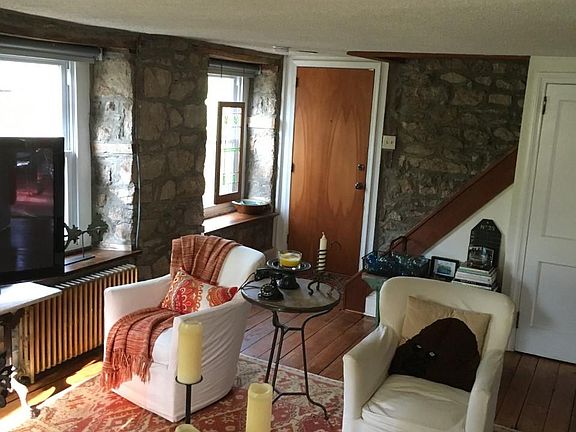 Large 1 Bedroom 3rd Floor Apartment in Doylestown/Buckingham area. New kitchen counter with contemporary sink and butcher block peninsula. Random wide plank floors and exposed stone walls in this historic building. Large loft bedroom, deep window sills, shared washer dryer in hallway closet. Water and heat included. Tenant is responsible for electric and sewer fee of $50 per month. Off-street parking for 1 car. Rear patio area and acre of ground for tenant use.