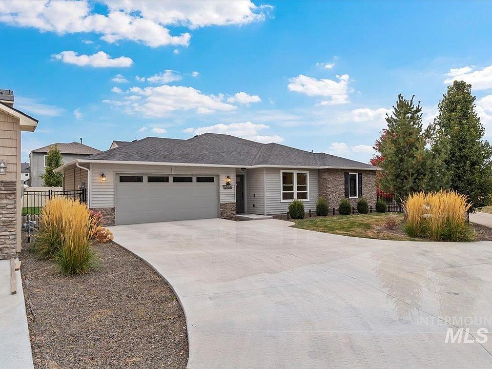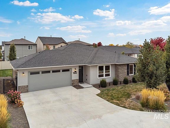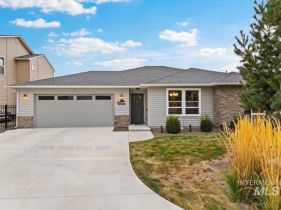Like new 4 year old home! Seller is offering $2,000 towards buyers closing cost! The St. James by Blackrock Homes is a beautiful single level home in The Greens at Movado. Located on a private dead end street great for entertaining and enough parking for 5-6 vehicles. Split bedroom floor plan with stone countertops, stainless steel appliances, fully fenced, and custom cabinets. Upgrades include covered back patio with remote controlled sun shade, Wyze smart home thermostat, and epozy flooring in the garage. Enjoy easy living with all the landscaping maintained by the HOA including mowing! This gives you more time to enjoy the amenities Movado has to offer….community pool, dog park, pathways, and 3 playgrounds. Only a half mile from the Eagle/Overland interchange you’ll have quick access to shopping, dining, medical services, freeway access, and more. This is a must see!