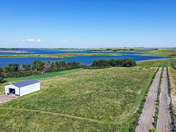 Rarely does a property like this come available—a private rural retreat on Jay Nelson Lake only minutes from Medina, ND. The newly built home showcases a spacious open-concept floor plan with a primary suite, two additional bedrooms, and a large mud/laundry room. An attached heated three-stall garage with office space provides a fantastic workspace and storage area, while outside you'll find an additional cold storage shop and workshop. For those with a green thumb, a sheltered garden area with fruit trees is established, along with two livestock sheds—perfect for hobby farming. Outdoor enthusiasts will appreciate the property's location in the heart of the prairie pothole region, renowned for world-class waterfowl hunting, and the included hunting blind and food plots add to its appeal. Jay Nelson Lake is regularly stocked by the North Dakota Game and Fish Department, offering excellent perch, and walleye fishing, with a boat dock included in the sale. Complete camper hookups with water, septic, and electricity make this property ideal for hosting friends and family. Whether you're a hunter, fisherman, hobby farmer, or simply seeking a peaceful retreat, this property offers endless opportunities to enjoy the best of North Dakota's great outdoors.