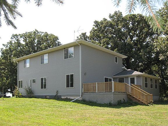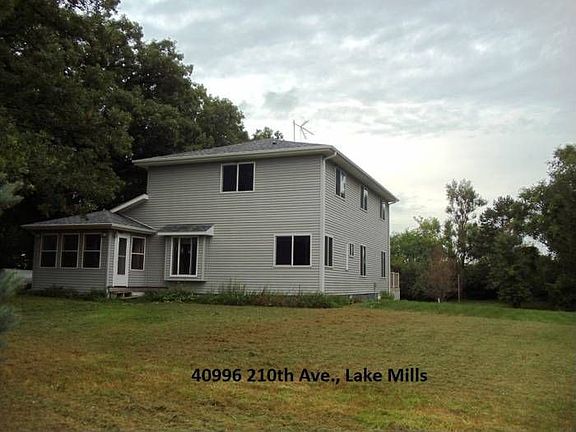 A few miles from Lake Mills on hard surface road this 8.66 acre acreage is nesteled among mature oak trees with a view of permanent wet lands. This 3 bedroom,& 3 bath home was built in 2002 over an existing basement.Porch entry is not quite complete, but will be done prior to closing. Kitchen has numerous oak cabinets including large walk in pantry. View Listing