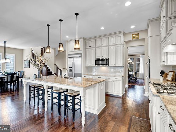 Nestled in the Grove Village of Highly Desired Willowsford, this Exquisite Oakton Model by Drees Homes exemplifies luxury and class! This meticulously maintained home boasts 4 bedrooms, 3 full and 2 half bathrooms and 6,151 sq ft over 3 levels. A grand hardwood foyer welcomes you with 10 ft ceilings leading into the open floor plan of the kitchen-family room area, which features a fireplace, a breakfast area, and a butler's pantry, creating a perfect flow for entertaining. The chef's kitchen features luxurious floor to ceiling cabinetry, pristine granite counter tops, a massive breakfast bar island, top-of-the-line stainless steel appliances, and a walk-in pantry with custom shelves. Additionally, this level boasts a cozy living room with French doors leading out to the wrap around front porch, a large study with custom built-in shelving and access to the covered rear porch, a formal dining room with updated light fixtures, and a half bathroom. Upstairs, the primary suite offers a sitting area, dual walk-in closets, and a luxurious spa-like bath with a glass enclosed shower and separate free-standing soaking tub. Three more spacious bedrooms each come with large walk-in closets. Spend night entertaining guests in the fully finished expansive walk-out lower level. The basement area boasts a recreation room with custom board and batten accent walls, a full bar with a wine fridge, modern cabinetry and granite counter tops – perfect for hosting on game days. This level also features a half bathroom, two massive storage spaces, and direct walk-out to the stone patio in the rear of the home. Beyond the stunning interior, this expansive property includes a pristine outdoor space. Enjoy the patio or unwind on the covered rear porch which features view of a forest and privacy in the backyard. Close Willowsford amenities include walking distance to the Zip Line Park, the Trailhead Pavillion Area, The Lodge Pool and Fitness Center, Willowsford Lake Boathouse, and miles of hiking trails. These are just a few features of what this amazing community has to offer. Located in Aldie, this property falls within the top-rated Lightridge High School pyramid. Don't Miss this Incredible Opportunity!