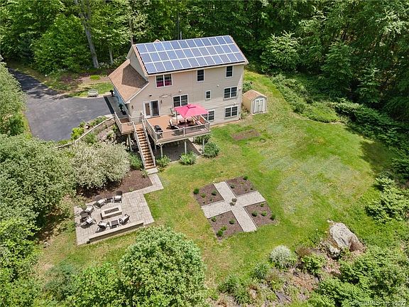 Are you looking for some privacy but want to be close to everything? This 4 bedroom, 3 bath Colonial sits on a rear lot and is an oasis from the hustle & bustle of everyday life. This home was custom built in 2003 and offers an open, welcoming kitchen with breakfast bar that flows right into the great room. With french doors out to the deck, this home is an entertainers delight. The first floor also has a formal living room and a cozy sitting room with a woodstove just perfect for those chilly winter evenings. The upper level has 4 bedrooms, a full bath and laundry. The Primary Bedroom Suite has a full bath, walk-in closet and a dressing area. Need extra living space? The walk-out lower level provides a large family room with full bath, a separate unfinished room and plenty of storage space. As your day winds down, enjoy the summer evenings on the patio with the built-in propane fire pit. The solar panels are an added bonus reducing the utilities cost significantly. This home has it all!