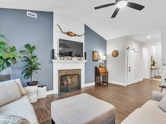 Built by a quality local builder with luxury-inspired design, this open and spacious home features 9-foot ceilings, crown molding, recessed lighting, and a large great room with a floor-to-ceiling fireplace wired for flat-screen TV. The kitchen offers stainless steel appliances, soft-close cabinetry, under-cabinet lighting, a gas stovetop, built-in microwave, dishwasher, and ample storage including a corner lazy Susan. The primary suite includes a trey ceiling, walk-in closet, and upgraded bath with double vanities, separate shower, and soaking tub. The home features whole-house LVP flooring, LOW-E energy-efficient windows, and natural gas servicing the hot water heater, fireplace, and kitchen stove. Enjoy outdoor living with a covered patio plus an extended cement patio and pergola. Additional upgrades include extra driveway concrete, a side cement pad, epoxy garage flooring, a three-car garage with coach lighting, and a high-efficiency heat pump. Upgrades and finishes exceed typical builder standards.