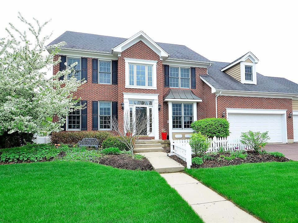 Spacious move-in ready brick & cedar home in desirable Fox Mill neighborhood of St Charles. Award winning St Charles schools, walking distance to Bell-Graham Elementary. Landscaped fenced lot, beautiful stamped concrete driveway, large deck with retractable awning and paver patio perfect for entertaining! Fresh paint inside and out! Step inside to find vaulted and 9' ceilings, refinished hardwood, detailed trim and more. Inviting living room, formal dining room and convenient 1st floor den. Gourmet eat-in kitchen includes granite countertops, stainless steel appliances including new dishwasher, island with breakfast bar and French doors to the deck. Vaulted family room with floor-to-ceiling brick fireplace with convenient gas logs. Upstairs, bedroom sizes are generous and include the master suite with walk-in closet and deluxe private bath with whirlpool tub, separate shower and double bowl vanity. Providing even more living space is the full finished basement with rec room, kitchenette, exercise room and full bath. Two new water heaters. Enjoy excellent neighborhood amenities including clubhouse, pool and walking trails. Ideal location and an unbeatable price make this home a MUST SEE!