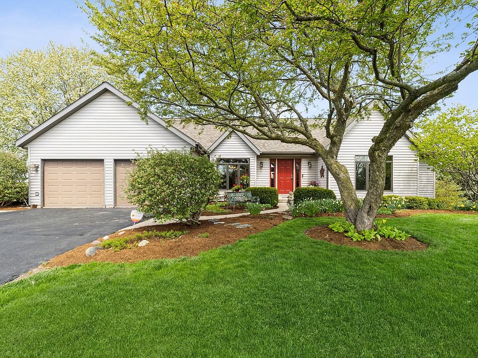 Custom ranch home in a convenient location close to Big Timber, Rt. 72, Randall Road and I-90. The home sits on 1 acre on a quiet road with no through traffic. You'll appreciate the open floor plan. The great room has vaulted ceiling and fireplace. There are hardwood floors in the living room, dining room and kitchen. The kitchen has granite counters, island and stainless appliances. The primary bedroom has private bath with separate tub and shower and walk-in closet. For convenience the laundry is on the main floor. The walkout lower level adds more living space with bedrooms, full bath and office. It would make a great in-law apartment. The family room with second fireplace opens out to the patio and big backyard. The home has a wine cellar, central vacuum, zoned heat and a/c and the roof is only 7 years old.