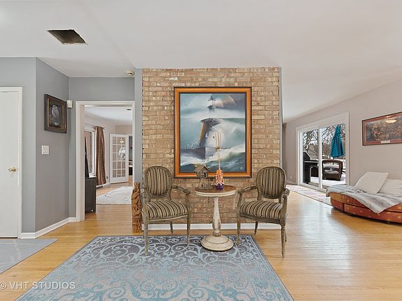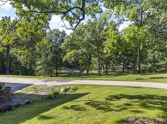 Spectacular...Amazing...PRIVATE! This is one of the most sought after lots with a panoramic waterfront view, rolling green hills, 200 year old Oak tree canopy and a $125,000 pond water feature in St. Charles. Recent updates: Refrigerator, oven, dishwasher, washer, dryer, water heater, boiler pump, water softener and filtration system with iron out feature, light fixtures, custom vanities (and toilets) in master bathroom and hall bath. The approximately 4000+ total square footage house is a bonus with open floor plan & boasts 3600 sq ft patio by pond with fire pit. Solidly built with extra thick cedar, the owner has upgraded to foam insulation and installed multiple wood burning heatilator fireplaces with blowers to allow the entire house to be kept warm using wood. (Also has radiant heating) Other improvements: Kitchen cabinetry refinished with new hardware, most of interior repainted, resealed skylight, exterior repainted in October 2019, updated plumbing connections, and Comcast lines for house and property. A 600 square foot back deck overlooks the entire property with a great fishing lake backdrop. On a very quiet street, St. Charles school district, and an incredible opportunity to own a very "special" property. Stunning views from all back windows of the pond, trees, and lake. Enjoy life all year round---Perfect one-of-a-kind location! Vacation ALL year round!