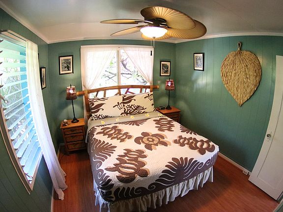 Charming one bedroom, one bath cottage located just a minute's walk from one of the most beautiful beaches on Oahu! Close enough to hear the sound of the waves from the bedroom at night. Furnished in tropical style, with comfortable queen sized bed. Four ceiling fans and an AC window unit. Beautiful, flower-filled tropical garden, very private. Covered front porch with space for outdoor dining. One year lease. Available for shorter term lease (3-6 months), but monthly rate is higher. Rent includes all utilities (except electric), gardening service, and WiFi. Tenant pays electric, but I have solar panels, so the bill is very low. (usually only $26/month, depending on personal usage). Large gated property, with owner occupied home on site. Shared washer/dryer in owner's carport. Quiet neighborhood, spectacular beach, friendly, relaxing environment, very tranquil setting. Designated street parking in front of the property. No pets, no smoking (inside or out). No exceptions. Cottage is ideal for single professional. We are quiet people and looking for mellow, easy going person for this rental. If you're interested, please send me an e-mail and tell me a bit about yourself. Cottage available for showing by appointment only. Wifi, gardening service and water are included in the rent. Tenant pays electric, but I have solar panels, so the bill is very low. No smoking, no pets, no exceptions. Parking on the street, directly in front of the property, for one vehicle.