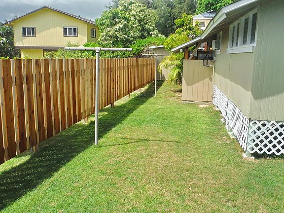 Old style Hawaii 2 bedroom/1 bath home with gated entry, spacious fenced yard and majestic mountain views. House is located in a quiet neighborhood just steps to the beach. Includes 2 tandem parking stalls (one gated and one open). Features vinyl driftwood floors and newer paint in kitchen, living room and bedrooms; ceramic tile in bathroom with shower. Upgraded kitchen and bathroom with full size refrigerator, stove/oven, sink and ample cabinets for storage. Stack washer and dryer included with solar water heater. Water and yard service included. $25 fee per applicant. Available 8/30. No smoking. $3,500 deposit. Stack washer and dryer included with solar water heater. Water and yard service included. No smoking. $25 fee per applicant. $3,500 security deposit.