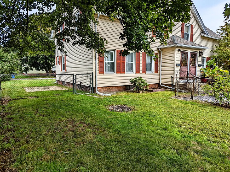 Newly renovated townhouse in a historic neighborhood. Located in a quiet area across from a baseball field. Unit includes a private basement for storage and laundry, a large kitchen and living area, and three bedrooms. New paint, flooring, appliances, and countertops. Private covered porch and yard. Off-street parking for one car. Owner pays for water. Renter responsible for oil and electricity. No smoking, no pets. Lease duration is one year. Renter pays first, last, and security upon signing.