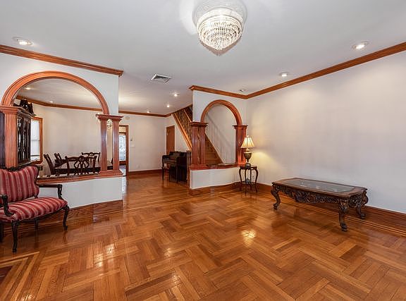 New Price! Spacious 4 Bedroom Home with a sprawling Oversized Back yard. The entire home has been recently renovated including custom woodwork and crown molding, staircases, new walls/ceilings, high hat lighting, electric, bathrooms, plumbing and Central Air Conditioning. This bright, airy, open style flow of rooms lends itself to today's lifestyle needs. The first floor features a sun-drenched porch, a large living room with fireplace, a separate formal dining room and powder room. The modern Eat-In-Kitchen and beautiful atrium will be the center of many family gatherings and allows convenient access to the private yard. The second floor features three bedrooms including an oversized master bedroom, an elegant marble bath with Jacuzzi and separate shower. This level has plenty of windows and closet space. One of the hidden gems of this home is the third floor bedroom with bath which will greatly appeal to its inhabitant's privacy. The home has a full finished basement with granite floors, bathroom, and separate laundry area. Outdoor space includes a beautifully landscaped front lawn, side garden, and oversized back yard. There is parking for several cars with a detached garage. This home is located in a highly sought after section of Bay Ridge one block to the harbor, Shore Road Promenade, and parks. Also, easy access to Manhattan via Express Bus, ferry, and subway. Bay Ridge offers great schools including Poly Prep Country Day School, Adelphi Academy, Xaverian High School, Fontbonne Hall Academy, and several of the highest rated public schools in NYC.