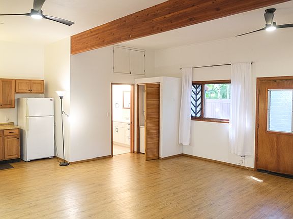 Laumilo Studio is located in a charming boutique community between the Ko olau Mountains and the Pacific Ocean, in the heart of Waim nalo. This oceanfront property enjoys access to five miles of white sand and tropical waters. Eclectic shops and restaurants are a short walk away. Bellows Air Force Station is 2.5 miles away, and Kaneohe Marine Corps Base is 10 miles from the property. The clean, spacious 500-square-foot studio sits within the private, gated compound where the owners reside. It features full air conditioning, a complete kitchen, open floor plan, ample closet space, in-unit washer and dryer, private back patio, and one off-street parking space. Please feel free to drive by, but do not enter the property. Security cameras and an alarm system are in place. This is a gated property, owner lives on-site. Very tranquil, private, and peaceful setting. Great neighborhood! Designated off street parking for one vehicle. No smoking (inside or out). No pets. No exceptions. $2,900 Rent includes: Electric, Water, Yard Service Tenant pays: Wifi/Cable Minimum 1 year lease, plus security deposit and application fee required. A credit and background check is included with application.