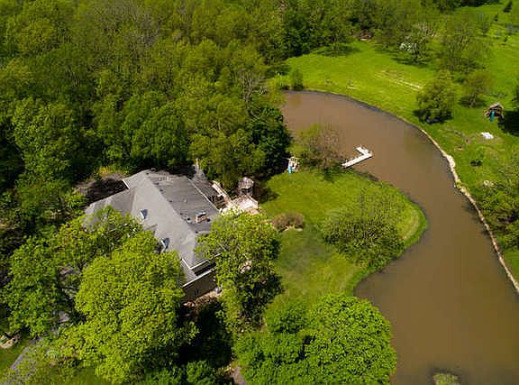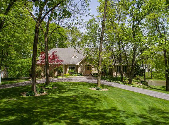 Location! Location! Private Retreat Poised on 2+ Acre Wooded Lot with Serene Meandering Stream & Private Dock on Spring-Fed Stocked Pond - Boundless Views of Nature's Wonders from Every Window! Decadent 1st Floor Master Suite w/Fireplace PLUS Two 2nd Floor Ensuites PLUS 2 More Bedrooms on 2nd Floor Connected w/Jack & Jill Bathroom! Total of 5 Bedrooms, 4 Fireplaces & 5.1 Bathrooms! Custom Brick, Stone & Cedar Home, Great Room w/Floor to Ceiling Stone Fireplace As Well As Living Room w/Fireplace Overlook, Three Season Room & Finished Walkout Basement w/Fireplace All Overlook Serene Pond! Other Amenities Include Dramatic Two-Story Entrance w/Custom Bridal Staircase, Vaulted Ceilings, Automatic Skylights in Great Room, Intercom System, Central Vac System, New Well Equipment, Freshly Painted Throughout, New Carpeting on Stairs & 2nd Floor As Well As New Carpet In Walkout Basement. Kitchen has Abundance of Custom Cabinetry w/Corian Counter Tops, Planning Desk, Breakfast Room, Breakfast Bar & Incredible Views from Every Window! NEW 2000SqFt of Decking With New Railings.