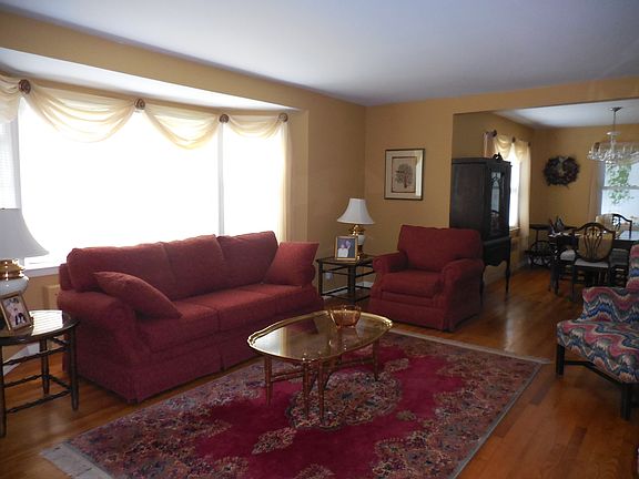 Impeccably maintained Ranch style home in established neighborhood not only offers main level living, but also boasts easy access to commuting routes. Enjoy the delightful and airy 3-season Breezeway which leads to the manicured yard. Updated kitchen features Thomasville Cherry Cabinetry with tile floors. Bow windows create a light and bright formal living room, enhanced by granite fireplace; Formal Dining Room and 3 spacious bedrooms - all with hardwood floors. Updated baths. Energy efficient solar radiant floors keeps you warm and economical. Large 2 car garage and full basement with roughed-in plumbing for additional bath; plenty of storage space. City water and sewer, low taxes. Truly, move-in ready!