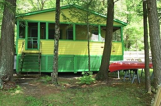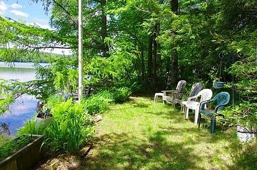 Delightful, old-fashioned summer cabin directly on the shore of Highland Lake where the water is clear and the views lovely. Swim, kayak, canoe or fish and then relax on the screened porch that overlooks the lake or sit on the grassy shore and enjoy the sunset. With the .24 acre lot on the water side, there is ample space for the wooded garden and a private patio/picnic area. On the other side of the street is a .55 acre lot that is included with the sale. 3 bedrooms are off of the large open living/dining area that opens to the screened porch. Improvements include all new foundation footings, mostly replaced windows and updated electrical. There is a free-standing storage shed and a storage area under the cabin. No motorboats on the lake and this cabin is purely seasonal, though there is a propane wall heater for chilly Spring or Fall weather.