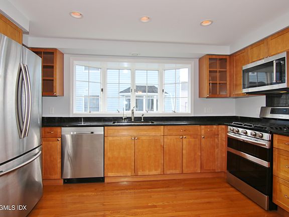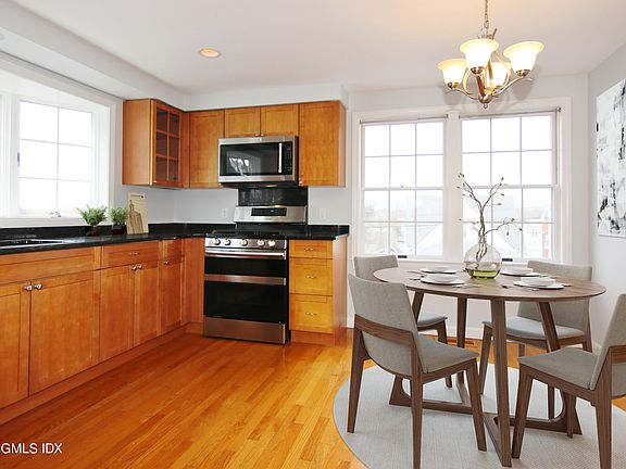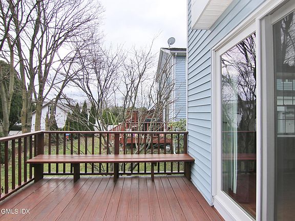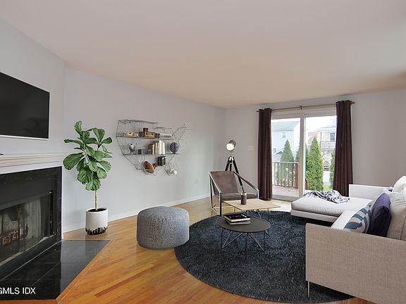 Warm, bright, open townhouse in a great location. Hardwood throughout the main and upper floors, abundant windows and tons of closets and storage. The living room and dining room combination has a fireplace and sliding doors leading to a fantastic deck which leads to the yard. The eat in kitchen is gorgeous with custom cabinets, newer stainless appliances and a granite counter. A powder room finishes this level. Upstairs you will find a large master bedroom with tons of closets, a full master bath and sliders to the Juliet balcony. The second bedroom is large with tons of closet space and is adjacent to the second full bath. Lower level provide bonus space with office and laundry. Pull down attic. New A/C and furnace. 1 mile to Metro North, Greenwich Ave and Byram Park with Town pool.