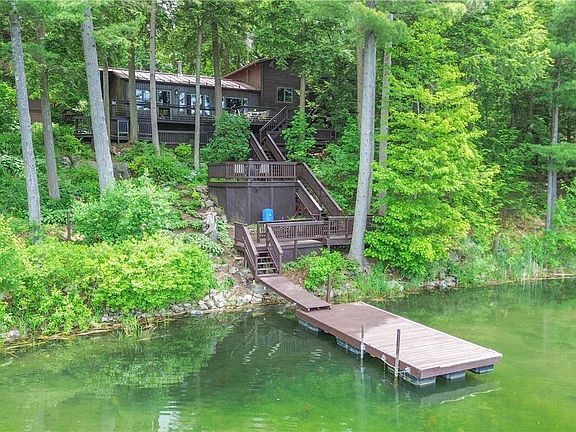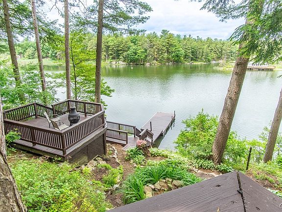 Your fully year round dream St. Lawrence River Home awaits! Nestled in the trees on over a half-acre with a generous level or privacy, this wooded gem boasts almost 2000 SF of beautiful living space with all you need for 4 seasons of peace and serenity on the river! Boasting a beautiful open living space which includes a gorgeous custom kitchen with granite counter tops, dining area overlooking the river and spacious living room with also amazing views and a cozy woodstove! Plus 3 bedrooms and 2 bathrooms with a stunning master suite with balcony and retreat like spa bathroom! Entry area feels like a Florida sunroom and is the perfect mudroom, laundry storage area that could also be additional space for an office, den etc! The large decks riverside are perfect for all your BBQ's, firepits, and gatherings of any kind with amazing views of the quiet protected bay off the river with main channel views through the cut! If you're a boater, you will deeply appreciate the dock that is like new and the protected waters which are also great for fishing and swimming! You even have a bar/restaurant within kayaking distance at Hurricane Joes! Don't forget! You have a small bunkhouse that is perfect for summer guests with their own private bedroom and bathroom separate from the house! Plus, a nice 2 car garage with lean too storage areas and good parking! This incredible property features just over 100' of riverfront and is in meticulous condition and ready to go! If you're looking for just a part-time or second home, this home will come fully furnished with the exception of the sauna, so it will truly be TurnKey! Call today before its too late!