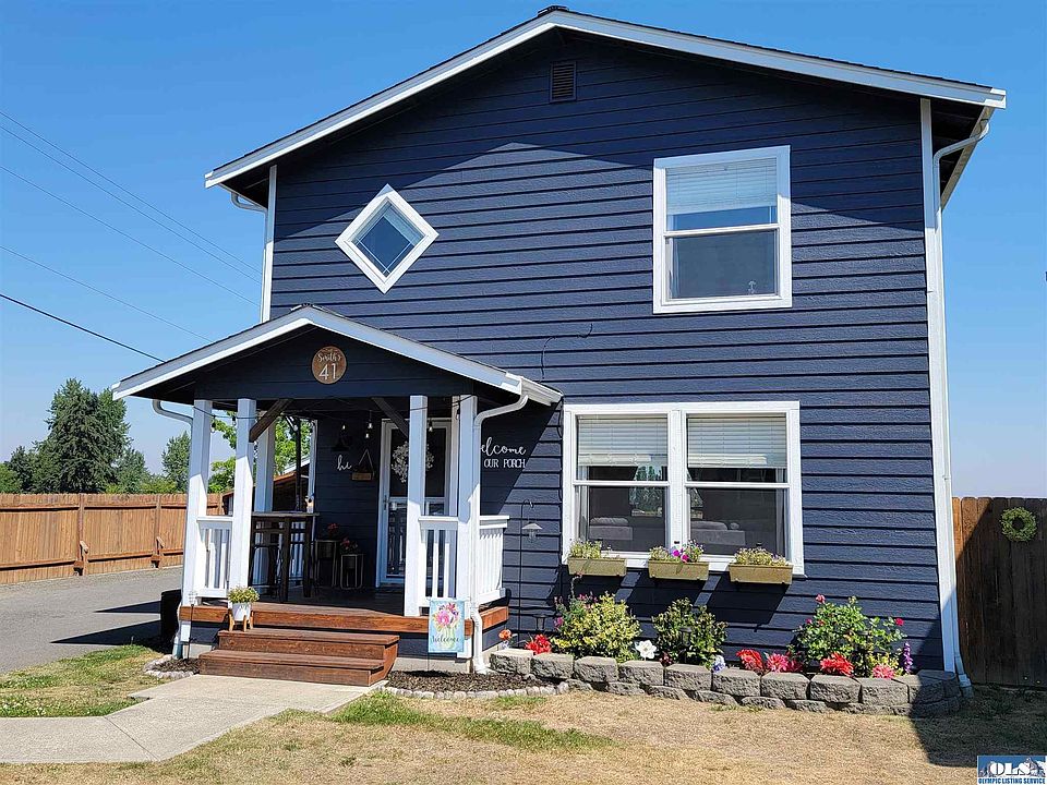 Very cute and well kept home in convenient location just outside of town. The home features three bedrooms all upstairs, laundry area, breakfast bar, fenced backyard with a nice concrete patio, living room with bay window and a two car detached garage. Yard has a side gate access to Sequim Ave for easy access for bikes or walking into town. There is a covered extra bike storage area next to the garage as well.