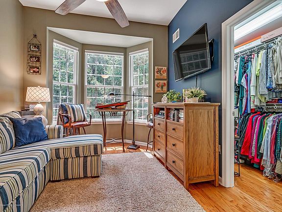 Spectacular floor to ceiling fieldstone gas fireplace. Crown molding. All windows are tinted. Plantation shutters. Pella sliding door with blinds inside in sun room. 3rd bedroom has electric widow treatment with room darkening shades. Heat lamps in both bathrooms. All pull outs in pantry and lower kitchen cabinets. French doors to sun room. Wooded lot. Walk-up attic. Ceiling fans every room. Outlet above mantel. Two televisions included. Large tv in living room and smaller tv in 2nd bedroom.